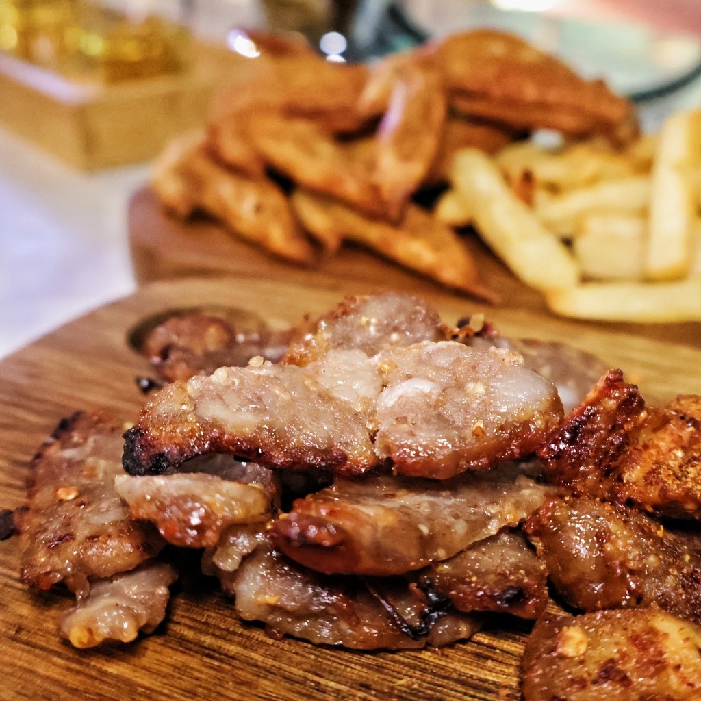 這份「原住民風味熱盤」絕對要點上來吃!大塊吃肉的最佳感受通通在這盤裡面~山豬肉以不同方式調理,帶著點微辣口感!除了山豬肉、馬告香腸還有飛魚卵香腸~旁邊佐附著店家自製的醬料,以及他們自種植的九層塔葉