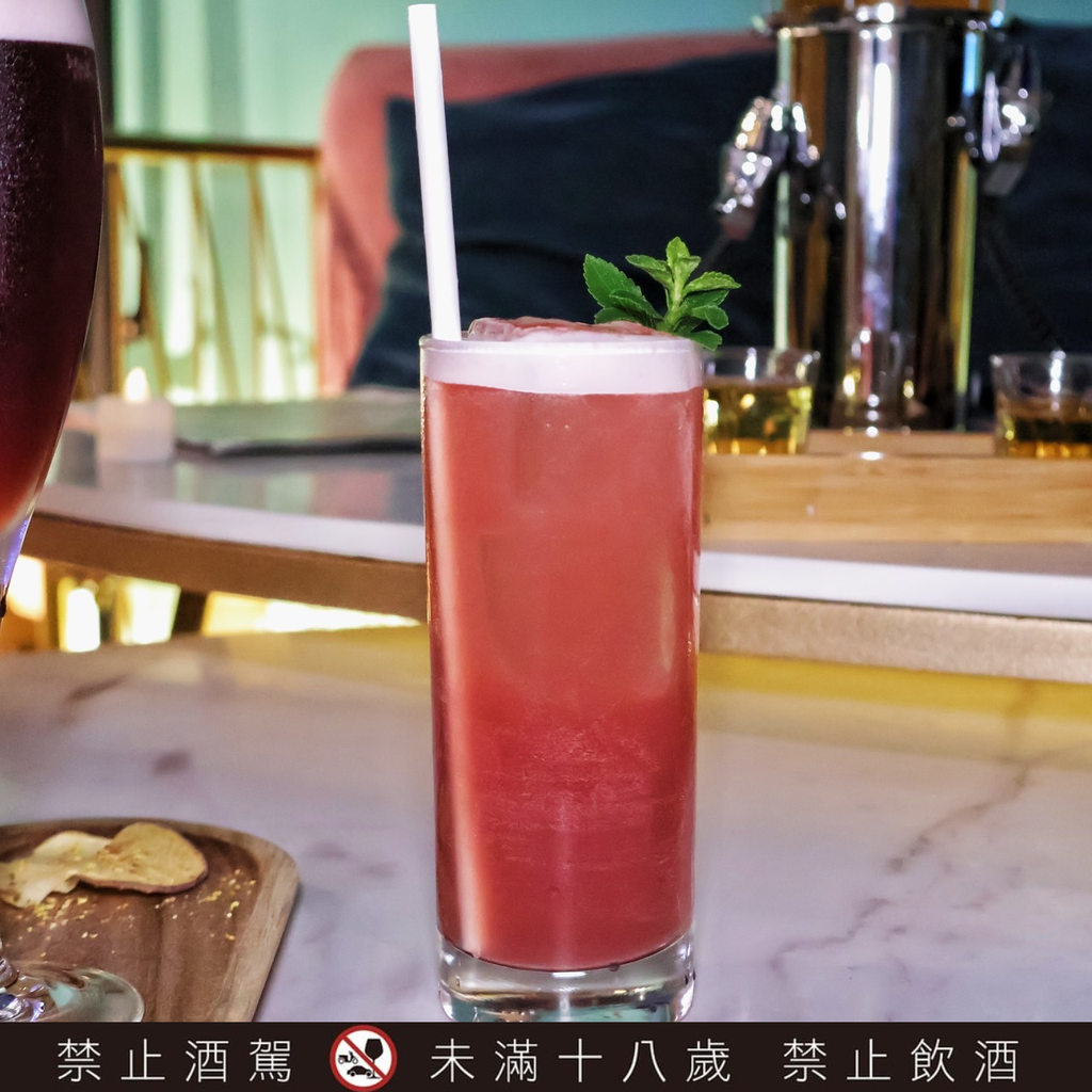 果香氣十足,喝起來酸甜酸甜的口感,即便加入益生菌也不會有其他口感存在,添加了檸檬的關係,將甜度降低整體酸V感比較深刻,可以喝得出每個調酒食材的香氣,卻同時又合而為一!